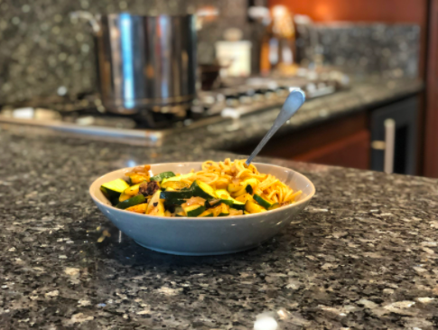 Our dish is based upon the original Italian dish, Fettuccini Al Burro. The biggest difference between the American and the Italian version is CREAM. This makes the average American bowl of Fettuccini Alfredo well over 1,000 calories! The first change we made to this dish was to apply the 50/50 rule and replace half the pasta with sautéed vegetables. We then eliminated both the cream and the butter. In its place, we added our SMART Caramelized Onion Broth which is sweet and flavorful. And we swapped the cheese for a stronger, tangier cheese – Pecorino Romano. The end result is a creamy and flavorful cheese sauce for our pasta and vegetables.