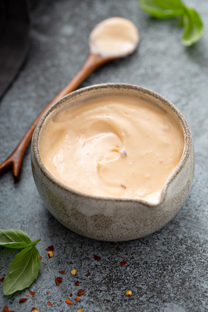 - Be careful at each stage not to blend too long or the mayo will pass emulsification and “break” which will look curdled.