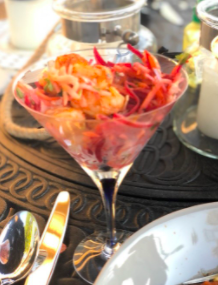 Forget everything you know about Cole Slaw and try this one. It’s fresh, sweet, and delicious. And it’s the perfect accompaniment to many other dishes. It balances Rich Carnitas or Spicy Shrimp. And it’s the perfect topping to a grilled Fish Taco. Raw Beets, Raw Sweet Potato, and Raw Apple – who knew this would be sooooooo good! If you have a Mandolin with a shredder blade on it – fantastic! If you don’t, no worries, a traditional cheese grater or a sharp knife work, too. This salad naturally has a lot of fiber which is great for our bodies and limiting Carbs (there are 11g Net Carbs). But we’ve also kept the fat and calories down by offsetting Mayo with Mustard. Then we amp up the flavor with fresh citrus juice and zest and finish it with a healthy serving of fresh herbs.