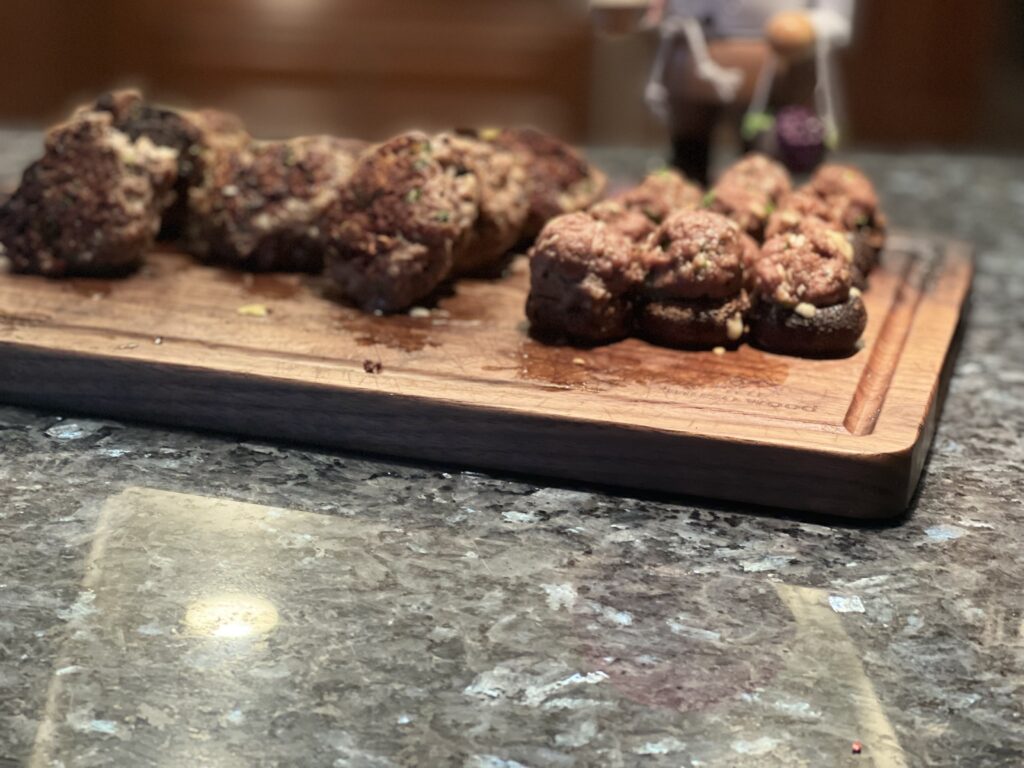 Beef and Bleu Cheese are both high calorie items, so the key to enjoying them and not derailing your weight loss plans is portion size. So we’ve created a “slider” that uses a mushroom “bun”. This “slider” is so flexible. It can be made into a small appetizer size, a larger side dish size, and a double mushroom bun main dish size.