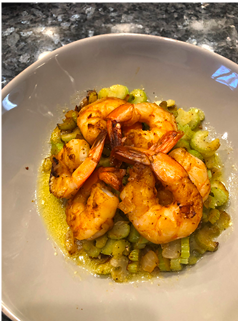 - To serve, divide celery amongst 4 bowls. Top with shrimp, and drizzle with dressing.