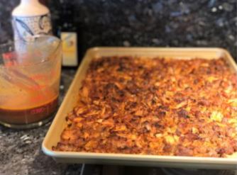 - Turn the oven up to broil. HINT: Don’t multi-task this step, it goes from golden crispy to burnt and inedible very quickly.