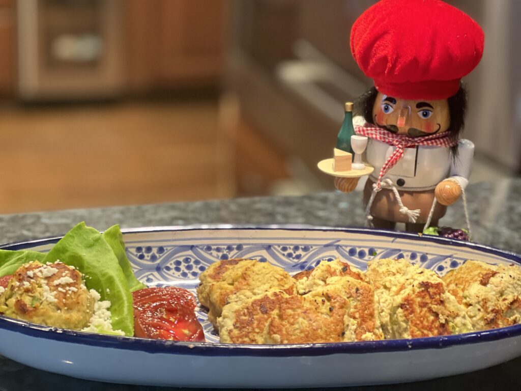 - Combine Chicken, Avocado, Garlic, Onions, Flour, Egg, Tamari, and Seasonings. Form by hand or using a scoop, 16 mini burgers. Set Aside.