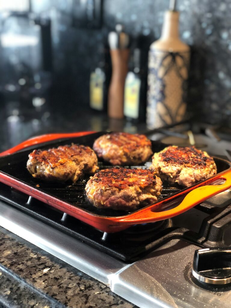- Form into four patties and cook on stove top (grill pan or skillet).