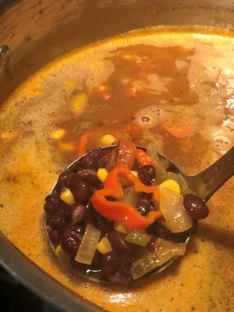 - Add broth and bring to a boil. Add lentils and chorizo. Reduce to a simmer. Cover and cook for 30-45 minutes or until lentils are tender.
