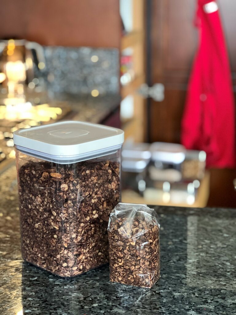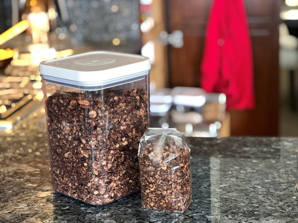 This is a phenomenal recipe for any vegetarian, vegan, or anyone who really loves chocolate! We’ve reduced the calories of this granola by removing most of the sweeteners and replacing them with rich cocoa powder and molasses. And we balance the sweet with sea salt.