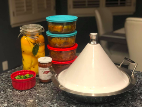 A Tagine is a way of cooking and a cooking vessel. Meaning, even if you don’t own a Tagine, you can cook a tagine in a dutch oven. You simply need a heavy pot with a tightly fitting lid. This creates a place for the food to steam and self-infuse with flavor. Morocco is on the Northern border of Africa on the Mediterranean Sea with just 8 miles of water (the Strait of Gibraltar) between Morocco and Spain. Therefore, influences from both Northern Africa and Spain are seen in Moroccan dishes.