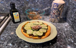 - Place tortilla on a parchment lined baking sheet and top with tomato sauce, cheese, and torn basil leaves. Return to oven to melt cheese slightly. If not using cheese, drizzle or brush the zucchini with Olive Oil, Sea Salt & Pepper. Bake until zucchini is slightly crispy.