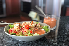Classically, Thousand Island dressing is served with Reuben Sandwiches. This can be quite rich and heavy, but the core flavor profile is strong - Corned Beef or Pastrami, Swiss Cheese, Sauerkraut (Cabbage) and Thousand Island Dressing. We’ve reduced the calories (roughly how much) of the dressing by replacing all the dairy and eggs with cashews. And for the meals, we’ve reduced the calories by eliminating bread and reworking the proportions of corned beef, Swiss cheese, and dressing. We’ve upped the volume with gorgeous cabbage and we’ve amped up the flavors with more spices and fresh ingredients.