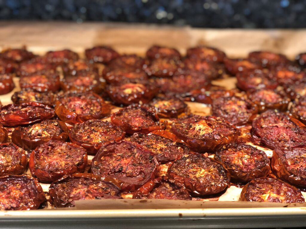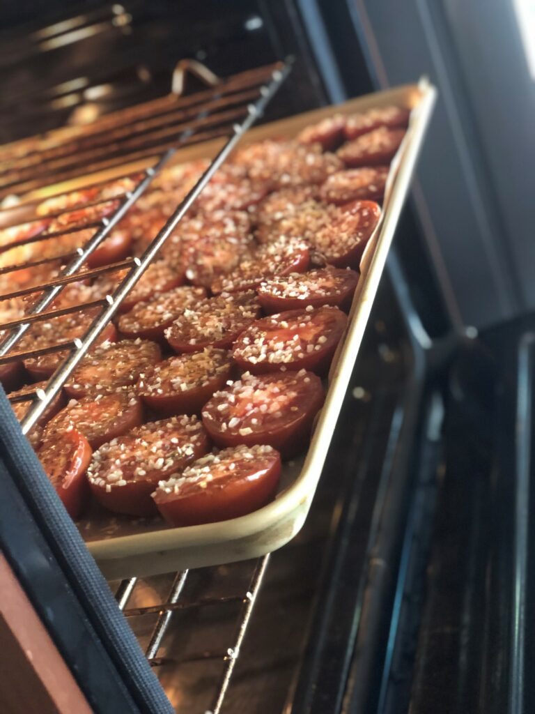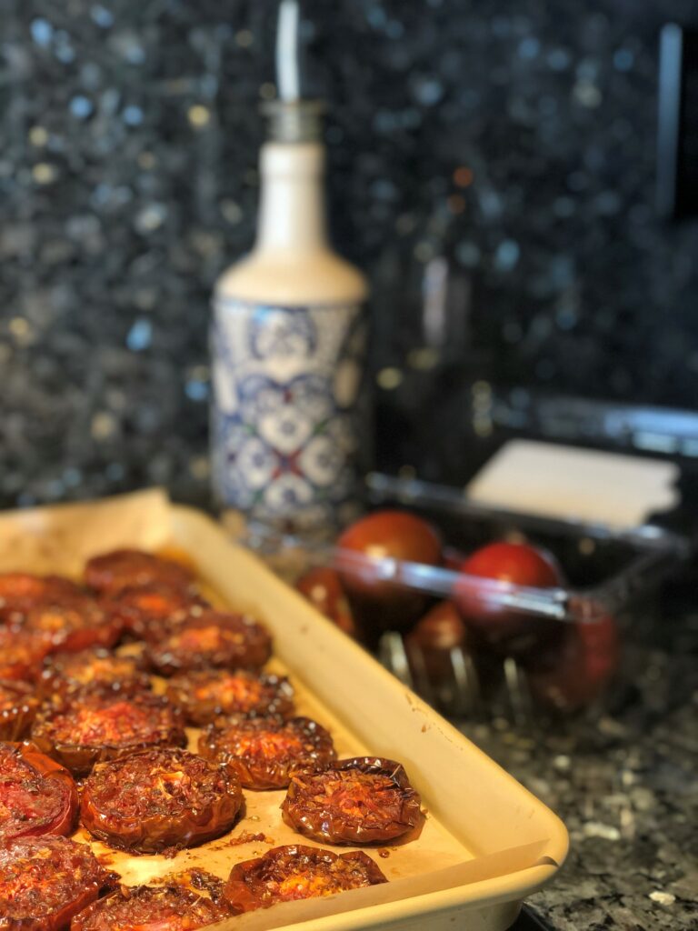 This is a great way to use up a batch of tomatoes a little past their prime. Slow roasted tomatoes are just concentrated goodness that we turn into an amazing vinaigrette. This dressing is creamy and sweet without the addition of cream, mayo or sweeteners – just the essence of amazing tomatoes – saving more than 100 calories per serving. The added flavor comes from roasting all the moisture out of the tomatoes and concentrating the sweetness. Then we added a boost of flavor with Balsamic Vinegar and Dijon Mustard.