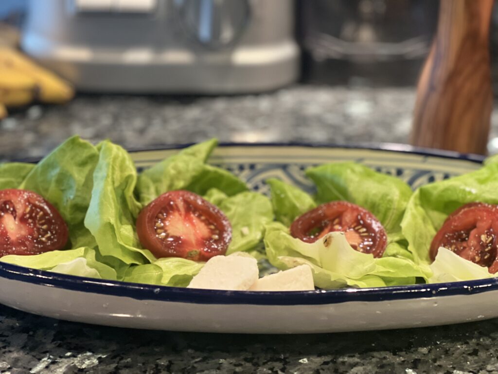 - On a platter, place 16 lettuce leaves. Top each with a slice of tomato and a Chicken Burger. Garnish with some crumbled Cotija Cheese.