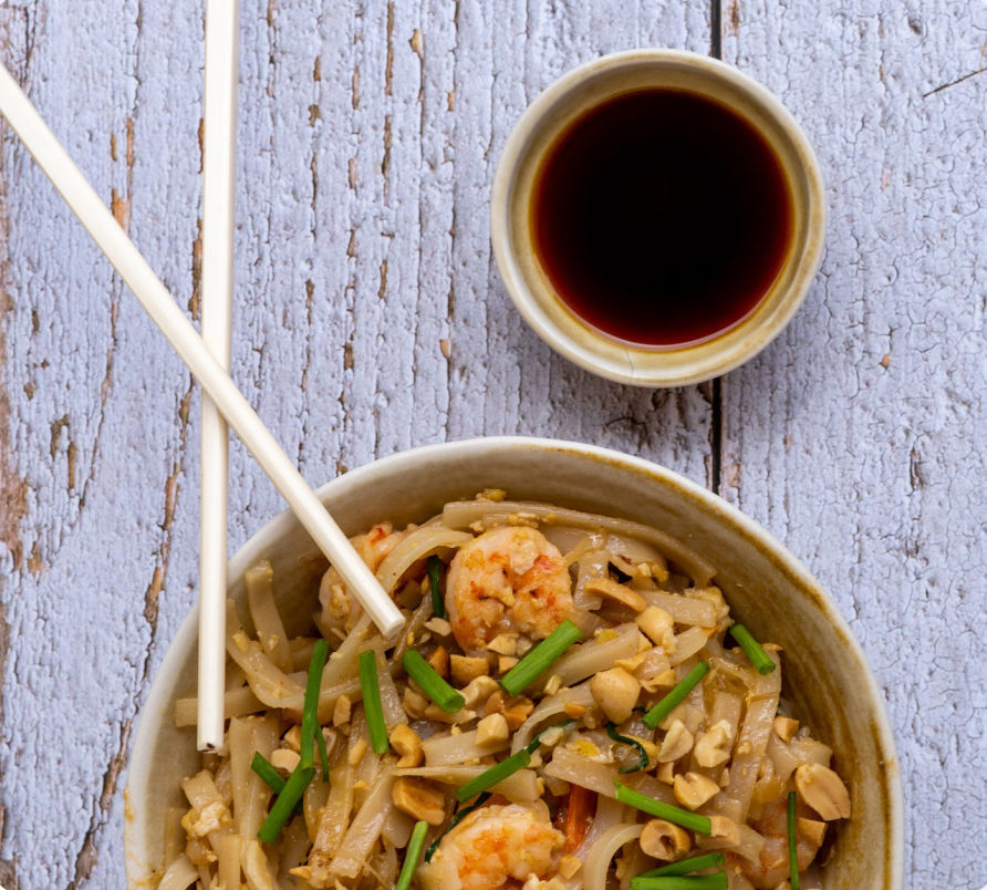 But where the real savings can be found is in the Noodle dish this is served on. You can use this on any salad you prefer, but we have created an alternative to a Thai Peanut Noodle Salad (see below) for only 100 Calories!