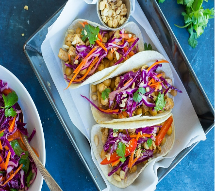 These Tacos can be made with nearly any protein you have available including lentils or chickpeas for a vegetarian option. And we’ve wrapped these in one of our favorite Smart Swaps – Jicama Tortillas – because the sauce is so flavorful, you don’t miss the tortilla. NOTE: if you don’t have jicama tortillas available at your grocery store, a lettuce wrap works equally well. If you have a mandolin in your kitchen, you can slice your own “tortillas” – just purchase fresh Jicama or Daikon Radish for appetizer size. And if you choose a traditional flour or corn tortilla, make sure to account for the added calories (appx +100 for each tortilla).